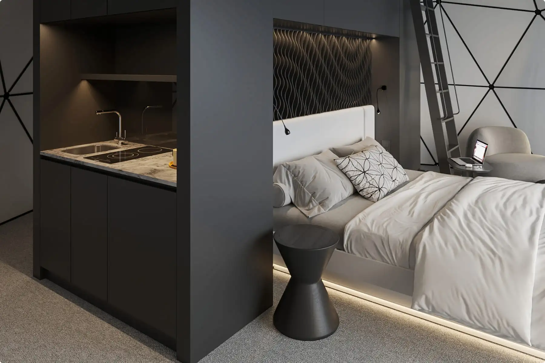 den samlede struktur er klar og kræver ikke yderligere indvendige efterbehandlingsarbejder, alt er klar